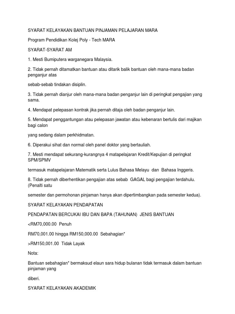 Syarat Kelayakan Bantuan Pinjaman Pelajaran Mara Pdf